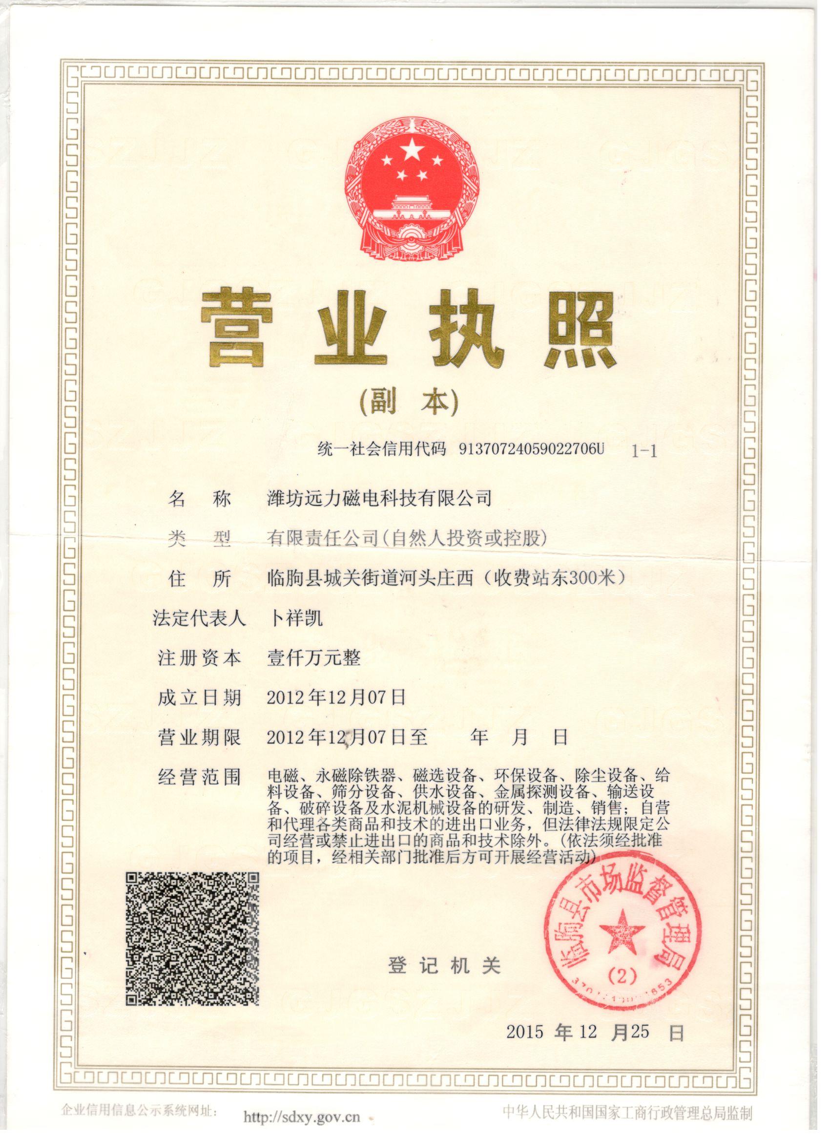 潍坊远力磁电科技有限公司专业生产磁选设备、除铁设备、破碎设备、给料设备、筛分设备、输送设备、永磁真空过滤机、盘式过滤机、金属探测仪、砂石料生产设备、磨矿及选矿设备等三十多个系列二百多种规格型号。服务范围涉及电力、煤炭、建材、冶金、港口、矿山、有色金属、粉体环保等10多个领域。